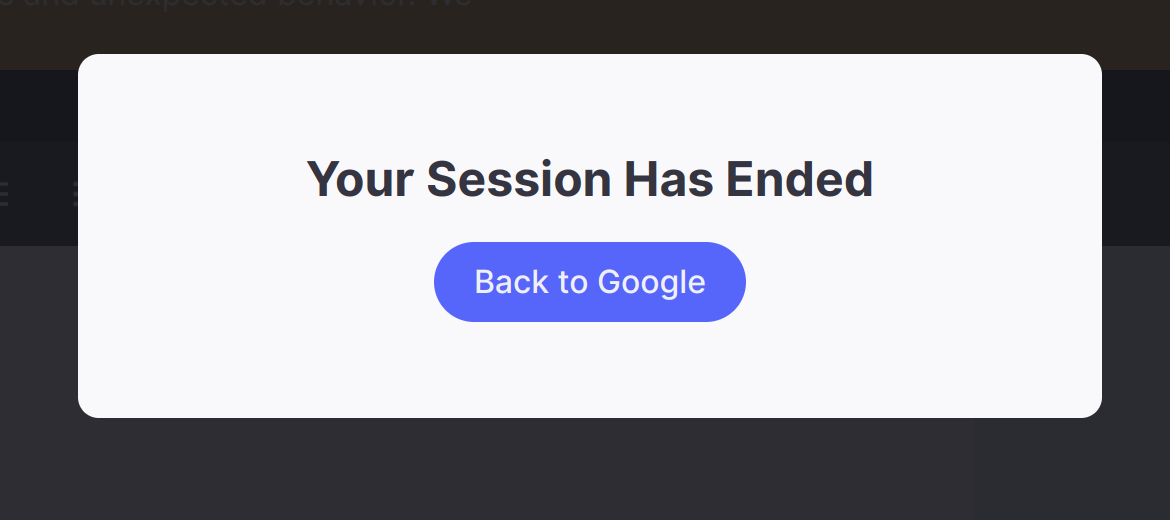 Upon clicking the Leave Session or if the leader clicks End Session for All, a pop up window will be displayed notifying the user that the session has ended and a button with the specified link and text will be shown.